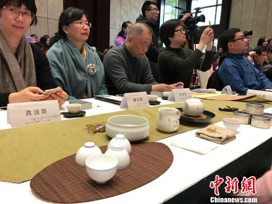 圖為小笠原流煎茶道副家元現(xiàn)場進(jìn)行了“比翼棚”瓢勺點(diǎn)茶法演示。 施佳秀 攝