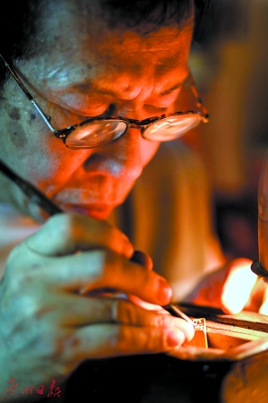 燙金絲印、公章膠印、原子印章……在和平西路9號有一家毫不起眼的刻章店——秋記刻章工藝,這里記錄著一段百年三代人的篆刻家族史。19世紀末期,叔公項信南隨著戲班來到廣州,成為一位金石篆刻名家;20世紀初,幼年喪父的項少南來到省城投奔叔叔項信南,也成為知名篆刻藝人,直到90歲高齡仍篆刻不輟;上世紀60年代,項少南之子項頌秋子承父業(yè),如今已入行57年。如今,隨著機器刻章的興起,從秋哥變成秋叔的71歲項頌秋卻面臨著手藝失傳?!叭绻幸懔Φ娜讼雽W(xué),我愿意免費教學(xué)?!彼f。