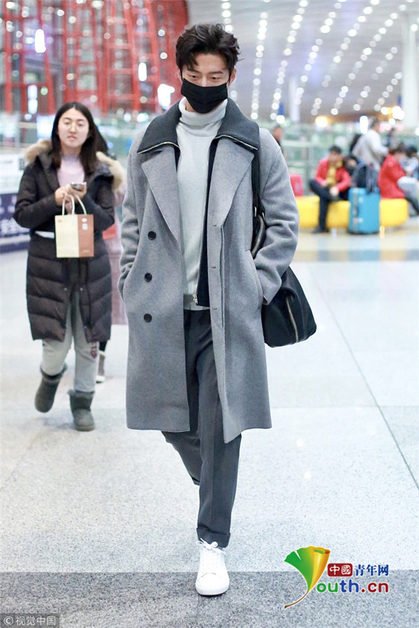 ??2017年12月13日,北京,竇驍身著灰色大衣、戴口罩現(xiàn)身機(jī)場(chǎng),為粉絲大方簽名,見(jiàn)鏡頭開(kāi)心比V揮手親和力滿(mǎn)分。