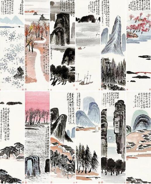 齊白石《山水十二條屏》創(chuàng)作于1925年,那一年齊白石62歲,正是他老年改變繪畫風(fēng)格的第四個年頭。他拋卻此前中國山水的程式,進(jìn)入“一洗凡塵萬事空”的真山真水創(chuàng)作境界,這件作品幾乎囊括了齊白石所有山水畫題材,而且每屏上均題有自作詩,鈐蓋齊白石常用印章,“詩書畫印”四絕俱全,堪稱其對山水創(chuàng)作升華后的集大成者。 (記者張 漫子)