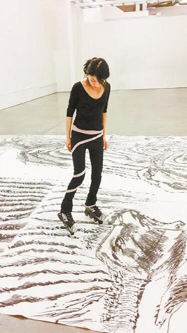 生于1988年的青年藝術(shù)家田海穌,用輪滑繪制中國(guó)水墨畫(huà)是她藝術(shù)探索的方式之一。