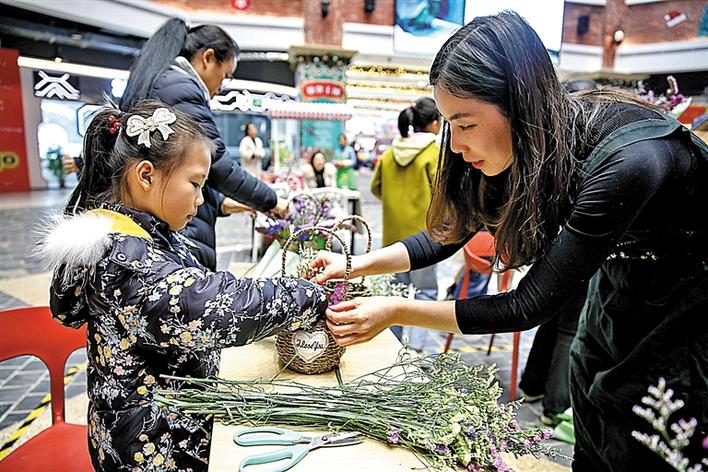活動(dòng)現(xiàn)場(chǎng),市民在體驗(yàn)花藝DIY。