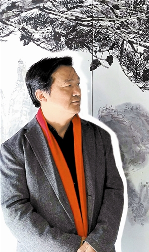 王和平說,指畫在美術(shù)大詞典里面能查得到的,起源于清初高其佩到高秉,再到“揚(yáng)州八怪”一直到近代。而指書就更早了,明末傅山是寫指書的,但是指書沒有指畫傳承得好,寫指書比畫指畫難度大。王和平說:“我寫指書的目的是為了畫畫,指畫最大的弊病就是不能畫長線和塊面,所以我在指書方面學(xué)到的最大的經(jīng)驗(yàn)就是畫長線。對(duì)于手指畫山水畫,原來的老先生畫山水都要用毛筆輔助上色的。我在研究的課題中,對(duì)我最有幫助的就是我畫指畫不再用毛筆上色,而是直接用手指、手背、手掌上色,而且上色比較均勻,最后畫面呈現(xiàn)的味道我覺得比毛筆上色的味道更濃、更有成像感。”