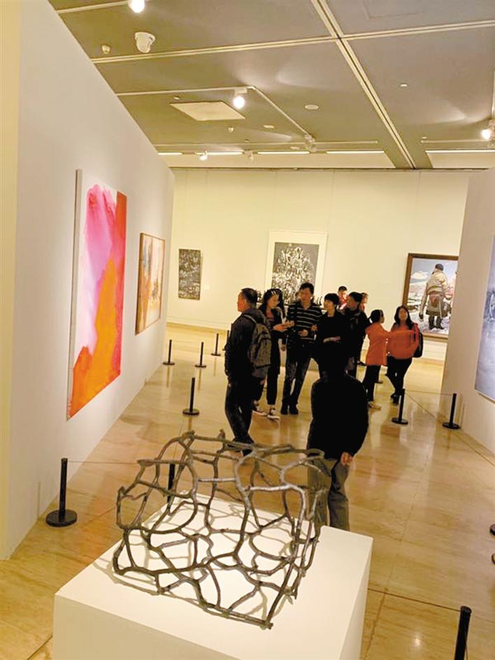 據(jù)了解,作為深圳有史以來規(guī)模最大的晉京美術(shù)展覽,“打開的窗口是美麗的——慶祝新中國成立70周年暨深圳建市40周年美術(shù)作品展”從3月29日在中國美術(shù)館開展以來,在北京掀起了一股觀展熱潮。展期十天,吸引了超過6萬觀眾參觀展覽,平均每天的參觀量超過5000人,清明小長假期間更是每天接待觀眾近萬人次。很多觀眾慕名而來,“這位觀眾就是連續(xù)兩天前來看展的?!闭褂[期間在展廳值班的深圳美術(shù)館副館長王子蚺指著一張照片告訴記者。