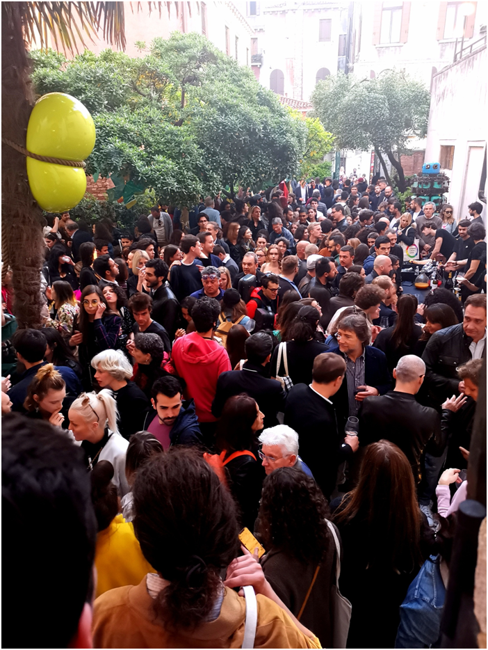 本屆威尼斯藝術(shù)雙年展覽藝術(shù)總監(jiān)為拉夫?魯戈夫(Ralph Rugoff),展覽名為“愿你生活在有趣的時代"(May You Live in Interesting Times)。全球藝術(shù)事務(wù)基金會,是荷蘭非營利組織,負責歐洲文化中心(European Cultural Centre)在莫拉宮和本博宮等五個主要展館主辦的大型國際展,邀請了世界各地優(yōu)秀藝術(shù)家參展,展覽現(xiàn)場人山人海,人流量大大超過以往,參觀者大多是來自世界各地藝術(shù)家與藝術(shù)愛好者、藏家、畫廊、策展人、及藝術(shù)機構(gòu)等。