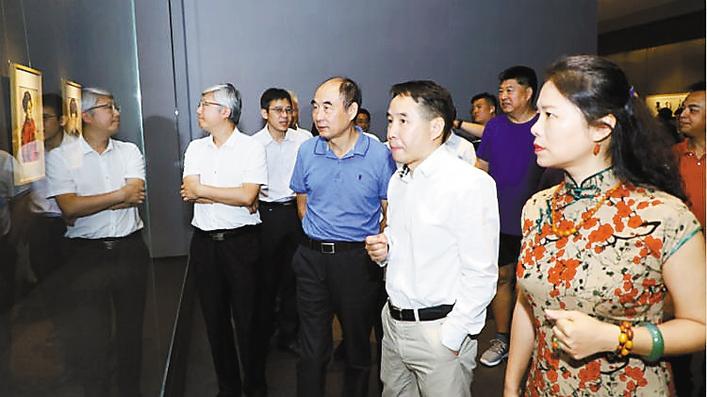 ▲王子武人物畫作品引起現場嘉賓濃厚興趣(主辦方供圖)