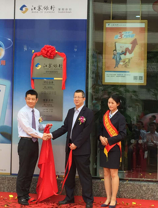 5月18日,江蘇銀行深圳坂田支行正式開業(yè),這是江蘇銀行深圳分行在深圳設(shè)立的第二十家網(wǎng)點(diǎn),也是江蘇銀行在深圳發(fā)展的又一成果,表明江蘇銀行深圳分行在網(wǎng)點(diǎn)建設(shè)發(fā)展中邁出了堅(jiān)實(shí)的一步。深圳市中小企業(yè)發(fā)展促進(jìn)會執(zhí)行會長常遠(yuǎn)在儀式上致賀詞,數(shù)十家中小企業(yè)董事長等高管出席開業(yè)儀式。