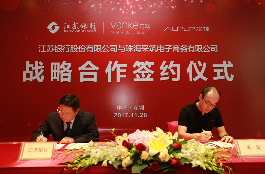 11月28日,采筑電商平臺發(fā)布會暨與江蘇銀行戰(zhàn)略合作協(xié)議簽約儀式在前海萬科國際會議中心成功舉行。萬科集團(tuán)副總裁王蘊(yùn)女士和江蘇銀行運(yùn)營總監(jiān)趙輝先生受邀出席儀式并致辭,江蘇銀行行長助理兼深圳分行行長李敏與采筑電商平臺總經(jīng)理都軍代表雙方簽署戰(zhàn)略合作協(xié)議??傂泄緲I(yè)務(wù)部周愛國總經(jīng)理、深圳分行張慶光副行長等一行出席發(fā)布會暨簽約儀式。