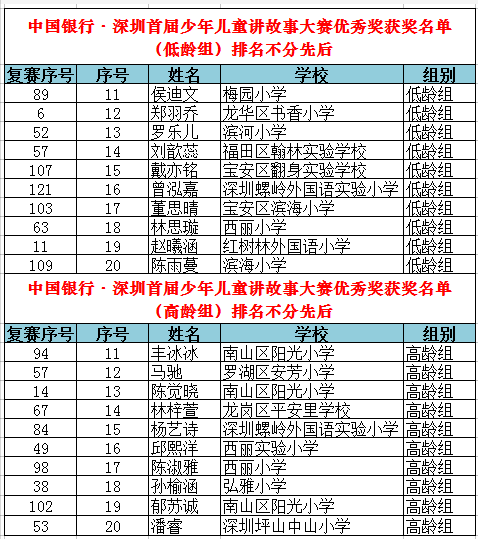 中國(guó)銀行·誰是故事大王“優(yōu)秀獎(jiǎng)”獲得者
