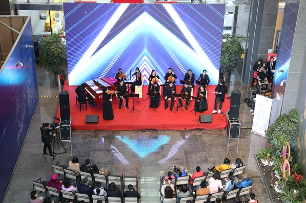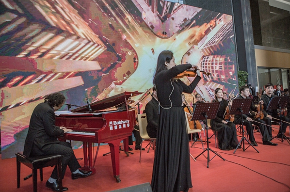 琴聲時(shí)而舒緩如流泉,時(shí)而激越如飛瀑,時(shí)而清脆如珠落玉盤,時(shí)而低回如呢喃細(xì)語……鋼琴與提琴交織,管樂和弦樂共舞,是的,你沒有聽錯(cuò),這是古典交響樂在午間響起,在福田CBD,在白領(lǐng)云集的辦公樓,在招商銀行深圳分行大廈的營(yíng)業(yè)大廳里。2018年2月6日,招商銀行深圳分行大廈迎來了福田愛樂樂團(tuán)午間音樂會(huì)新年的第三場(chǎng)演出,也是該樂團(tuán)自2015年創(chuàng)辦午間音樂會(huì)以來的第84場(chǎng)演出。高雅的藝術(shù)氣息讓原本單調(diào)的午間趣味橫生,動(dòng)人的場(chǎng)景、美妙的樂音,在這里一一定格。
