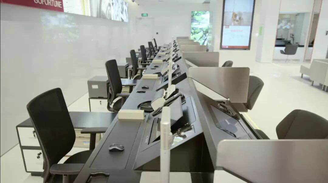 在客戶隱私保護(hù)方面,招行3.0網(wǎng)點(diǎn)也可謂是下足了功夫,傳統(tǒng)聯(lián)排的理財(cái)柜臺設(shè)計(jì)成了小隔間,增加了私密性。金葵花區(qū)所有的洽談間都配備了霧化玻璃,沒有客戶的時(shí)候,玻璃呈透明狀態(tài),有客戶的時(shí)候,玻璃就可以一鍵霧化,有效保護(hù)客戶隱私。
