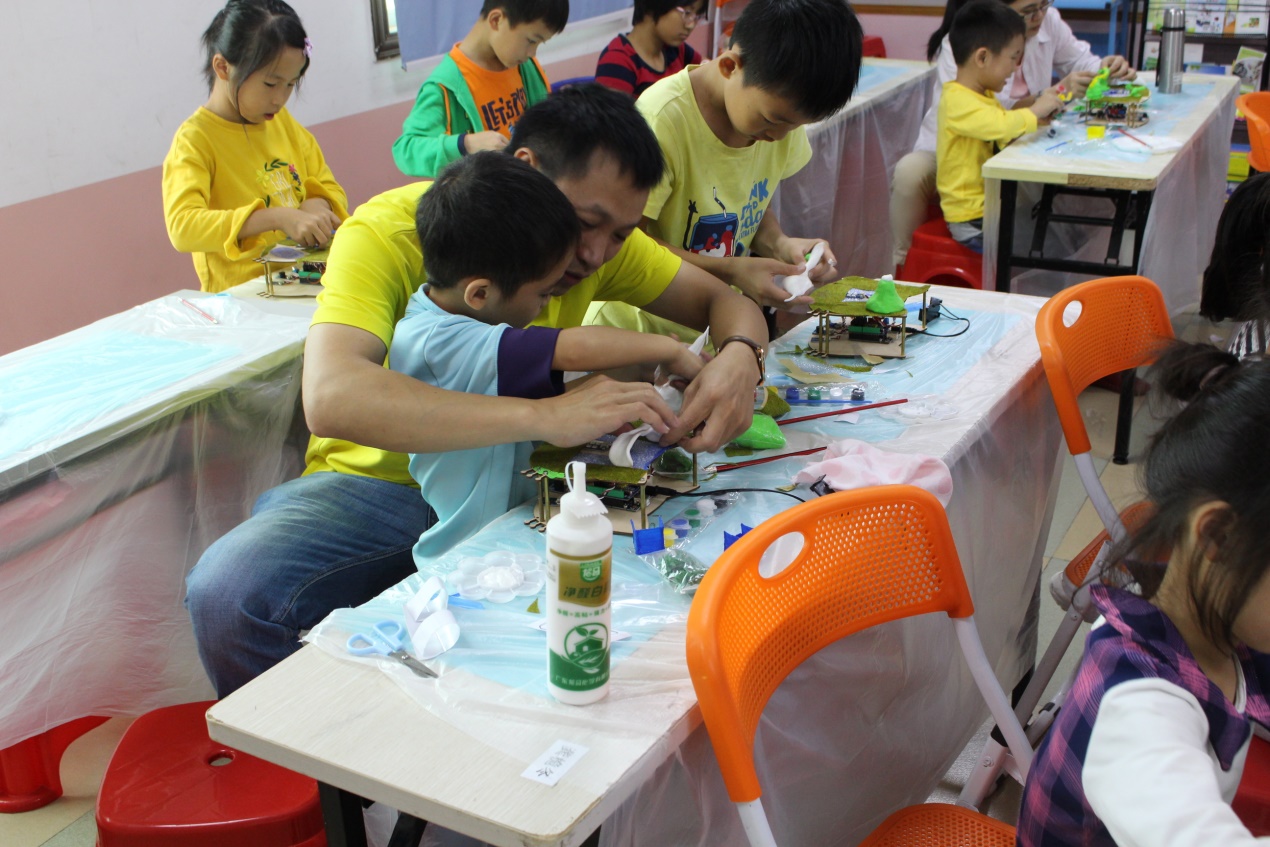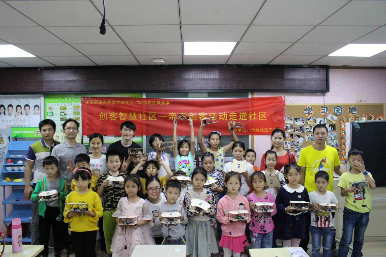 “創(chuàng)客智慧社區(qū)”親子創(chuàng)客活動(dòng)項(xiàng)目的通過親子間互動(dòng)互助,共同完成作品深入的體驗(yàn)科技創(chuàng)新的魅力,改善家庭親子關(guān)系,提升父母對(duì)孩子的引導(dǎo),提高家庭教育的質(zhì)量,豐富社區(qū)居民的科技活動(dòng),展現(xiàn)“人與科技”的關(guān)系及未來生活發(fā)展的思考,讓青少年持續(xù)擁有探索創(chuàng)造的能力。