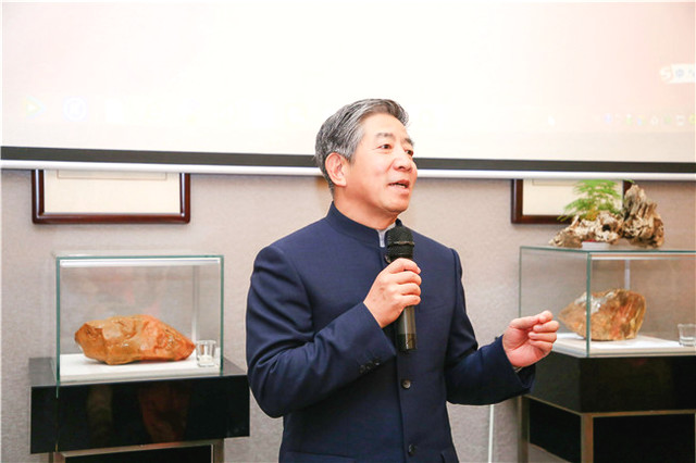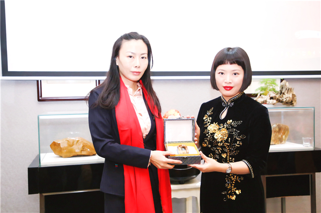 自古書(shū)法印章不分家,作品必須蓋印才算完整。本次活動(dòng)場(chǎng)地提供田黃博物館、希雍天石董事長(zhǎng)繆建生為到場(chǎng)嘉賓和校友,受邀分享田黃石科普知識(shí),介紹歷經(jīng)1.8億萬(wàn)年形成的田黃石種類(lèi)及特點(diǎn)。 歡聚活動(dòng)上,田黃博物館特別挑選了一枚“溫、潤(rùn)、細(xì)、膩、凝、潔” 、印面方正碩大,雙龍雕刻立體,栩栩如生的昌化田黃貫斗雙龍印璽,捐贈(zèng)給文學(xué)社。 收到如此珍貴的禮物,求是文學(xué)社秘書(shū)長(zhǎng)樓蓉表示:非常感謝田黃博物館的支持與厚禮,后期將委托機(jī)構(gòu)對(duì)這塊印石義拍或義賣(mài),所得將以求是文學(xué)社和田黃博物館名義,捐贈(zèng)給公益項(xiàng)目,會(huì)讓這一珍貴的禮物,發(fā)揮更多的社會(huì)價(jià)值。