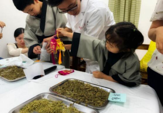 醫(yī)生還向“小中醫(yī)”們介紹了中醫(yī)理療知識,醫(yī)生將人體的經(jīng)絡(luò)比喻成公交路線,將點按穴位所產(chǎn)生的身體感應(yīng)點比喻成公交車,用形象生動的方式給小中醫(yī)們講解了人體的經(jīng)絡(luò)構(gòu)成和中醫(yī)推拿、刮痧等的科學原理。最后,小中醫(yī)們還在指導(dǎo)下根據(jù)傳統(tǒng)的中草藥配方及功效制作了驅(qū)蚊香囊。這種別出心裁的“動手式”課程讓“小中醫(yī)”們進一步加深了對中醫(yī)的理解和體驗。