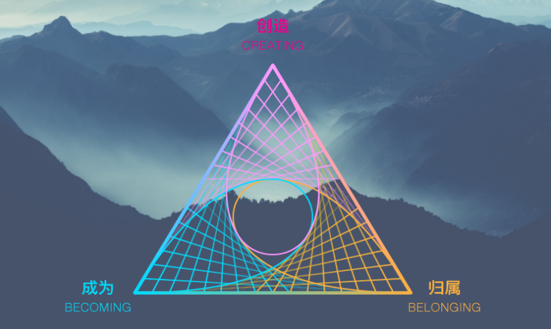 在這兩個(gè)維度的基礎(chǔ)上,陳瑋教授增加了Creating“創(chuàng)造”這個(gè)維度。Creating“創(chuàng)造”,是我給這個(gè)世界留下的精神和物質(zhì)遺產(chǎn),世界因你而變。在成為和歸屬完成之后,人生的使命是創(chuàng)造,是我們給這個(gè)世界帶來(lái)的更新與升級(jí)。當(dāng)我們問(wèn),未來(lái)會(huì)是什么樣?我們真正要問(wèn)的是:我,將為這個(gè)世界創(chuàng)造什么?