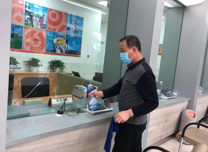 每天正式營業(yè)前,網(wǎng)點(diǎn)對營業(yè)大廳、自助設(shè)備、柜臺等進(jìn)行360°全面無死角消毒。營業(yè)期間,每天確保廳堂環(huán)境每兩小時(shí)、自助機(jī)具每小時(shí)的頻率做好消毒工作,營造安全的業(yè)務(wù)辦理環(huán)境供客戶安心辦理。