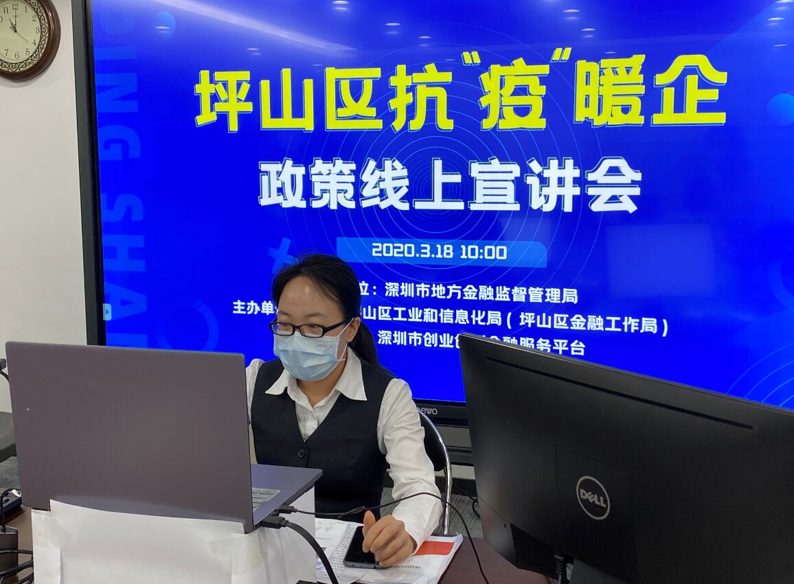 為充分支持坪山區(qū)內(nèi)企業(yè)抗擊疫情和復(fù)工復(fù)產(chǎn),攜手企業(yè)共渡難關(guān),2020年3月18日上午,深圳農(nóng)商行坪山支行通過“線上宣講”方式參加了由坪山區(qū)工業(yè)和信息化局聯(lián)合開展的抗“疫”暖企政策宣講和銀企對(duì)接系列活動(dòng)?;顒?dòng)中,深圳農(nóng)商行坪山支行為區(qū)內(nèi)100多家企業(yè)詳細(xì)介紹該行在抗疫期間推出的“抗疫周轉(zhuǎn)貸”、“抗疫訂單貸”、“抗疫醫(yī)療貸”等專屬產(chǎn)品,同時(shí)也為企業(yè)推薦了“速抵貸”、“速易貸”、“稅e貸”、“通發(fā)貸”等特色產(chǎn)品。