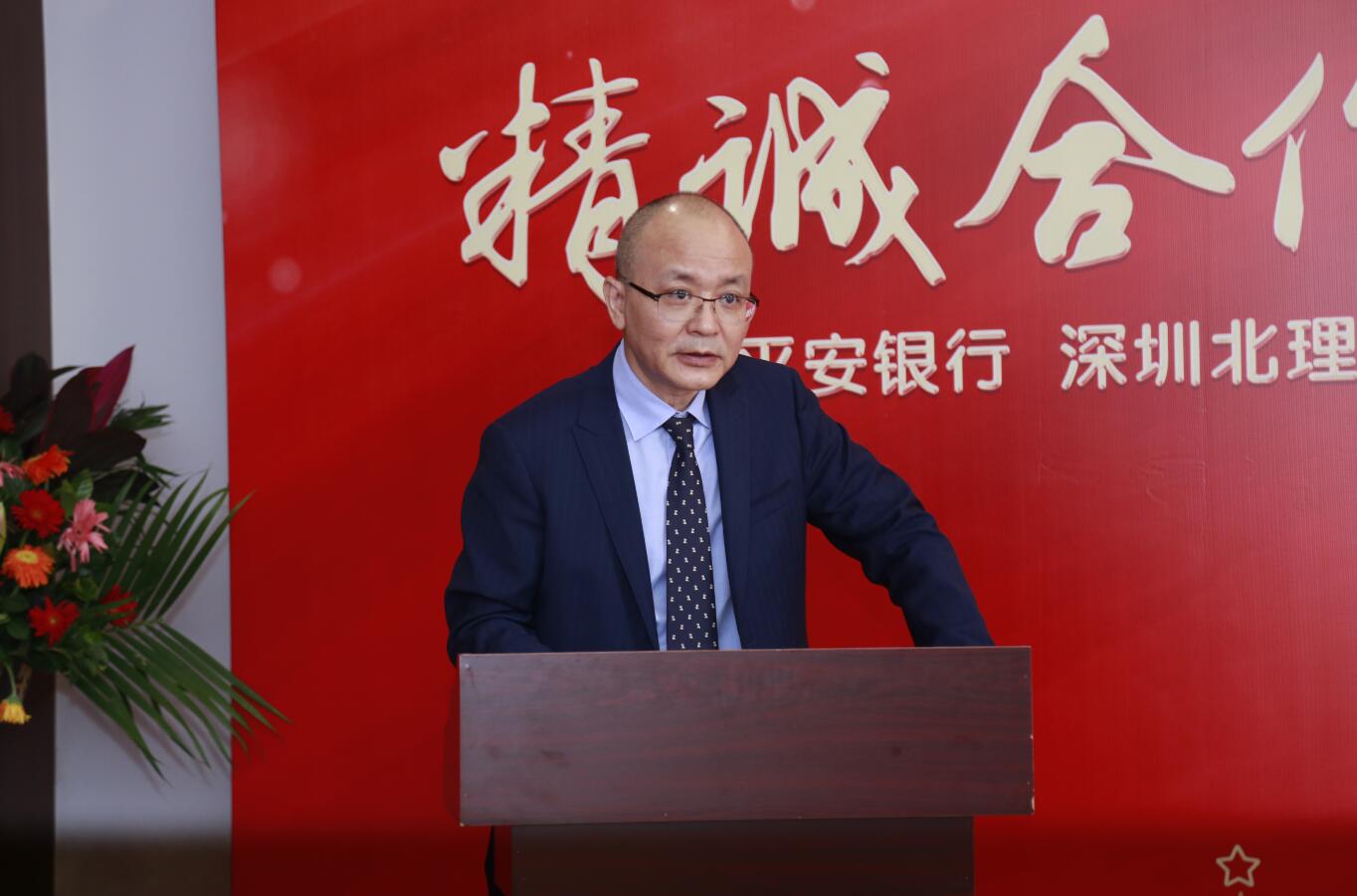 平安銀行行長胡躍飛在捐贈簽約儀式上致辭