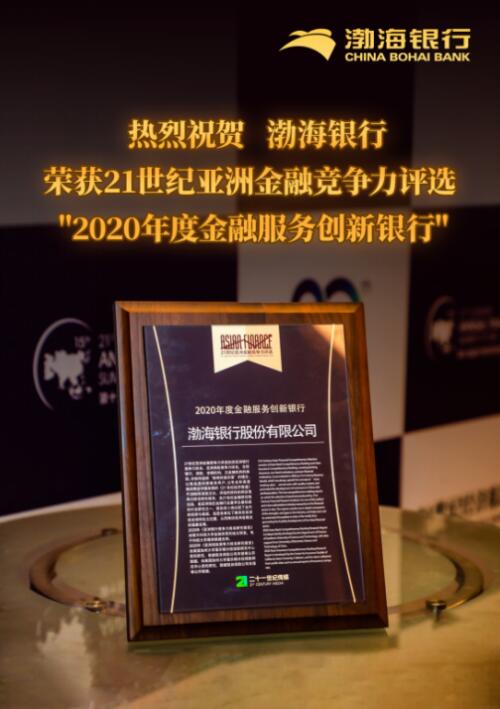 深圳新聞網(wǎng)·見圳客戶端2020年11月17日訊 日前,在由《21世紀(jì)經(jīng)濟(jì)報(bào)道》、21財(cái)經(jīng)APP主辦的2020第十五屆21世紀(jì)亞洲金融年會(huì)上,最年輕的全國性股份制商業(yè)銀行——渤海銀行獲頒“2020年度金融服務(wù)創(chuàng)新銀行獎(jiǎng)”,這是繼去年渤海銀行在“21世紀(jì)亞洲金融競爭力”評選中首度斬獲“金融科技銀行”稱號后再度獲行業(yè)權(quán)威媒體認(rèn)可。
