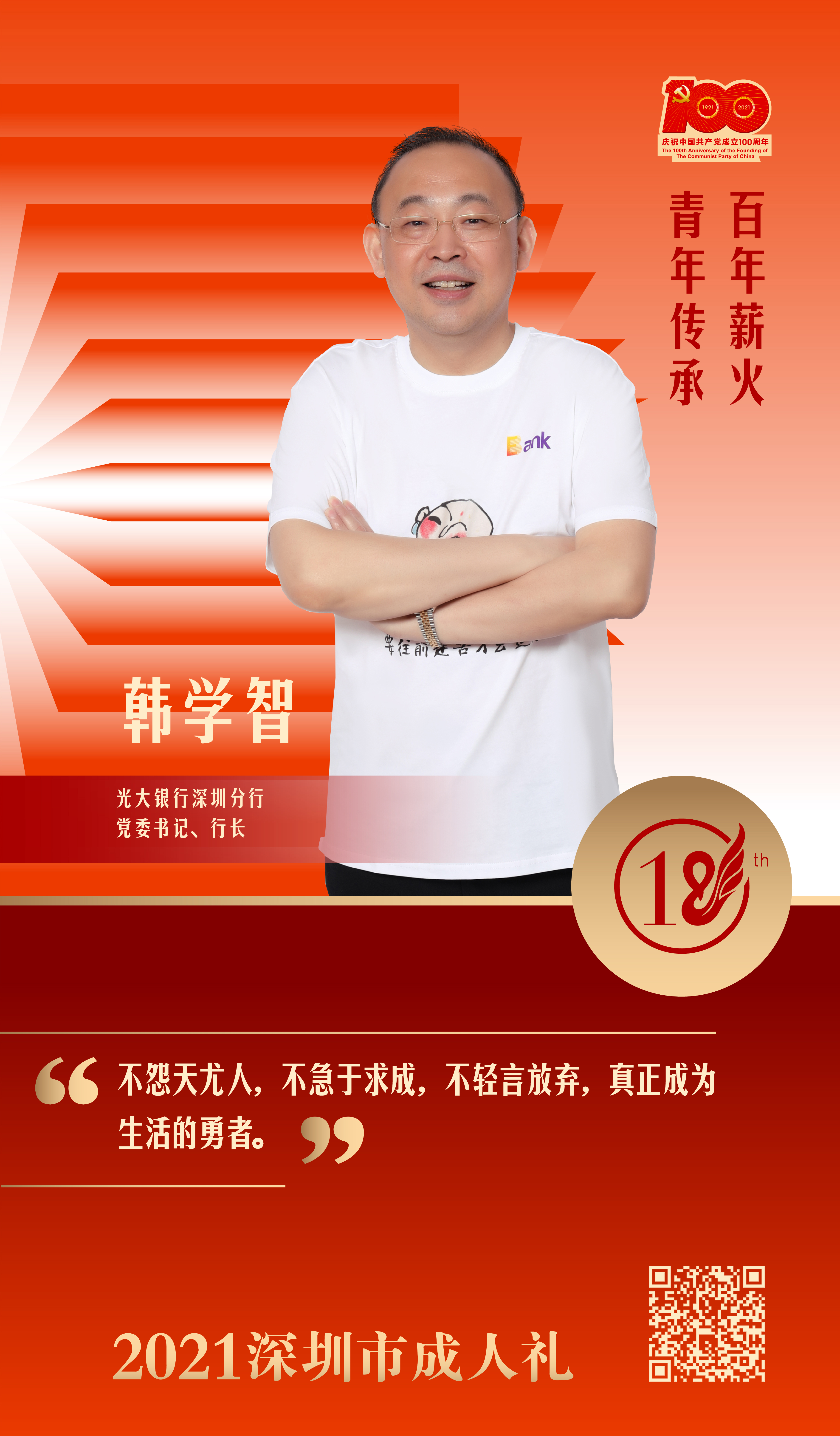深圳新聞網(wǎng)·見(jiàn)圳客戶(hù)端2021年5月10日訊“以‘三勤四慎’提升青年生活幸福感,希望年輕人能勤于思考,善于思考,學(xué)會(huì)從思考中發(fā)現(xiàn)問(wèn)題,解決問(wèn)題,這樣才能取得更快的進(jìn)步?!痹?月7日拉開(kāi)序幕的“百年薪火,青年傳承”2021深圳市成人禮系列活動(dòng)中,光大銀行深圳分行黨委書(shū)記、行長(zhǎng)韓學(xué)智作為青春代表,通過(guò)網(wǎng)絡(luò)渠道,為青年們送上飽含激情和期待的寄語(yǔ)“明信片”。