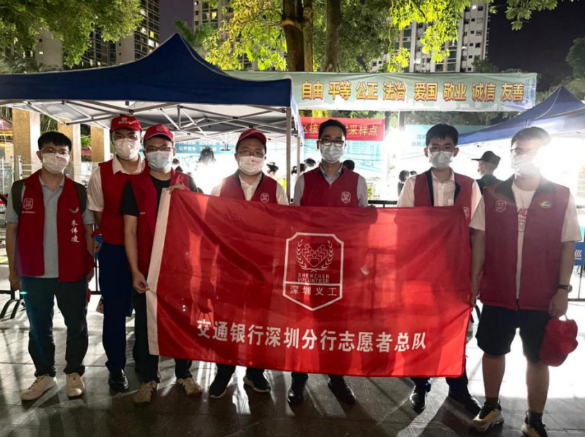 深圳交行還積極響應(yīng)深圳團(tuán)市委、深圳市義工聯(lián)合會號召,向青年員工發(fā)出志愿服務(wù)倡議,組織廣大青年團(tuán)員積極參與到核酸檢測志愿者隊(duì)伍中,筑牢疫情防控青春戰(zhàn)線。該行團(tuán)委、福田支行團(tuán)支部、光明支行團(tuán)支部和羅湖支行團(tuán)支部等多家單位志愿者深入社區(qū),在多處核酸檢測采樣區(qū)域,都能夠看到身穿紅馬甲的交行青年志愿者。