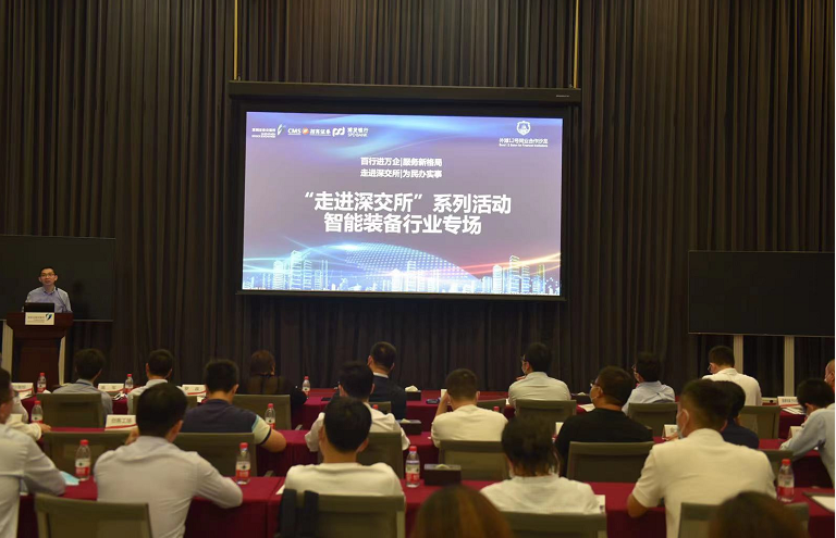 本次活動以智能裝備行業(yè)專場宣講與圓桌論壇為主,多家優(yōu)質智能裝備企業(yè)參加?;顒娱_始,深圳證券交易所市場發(fā)展部與浦發(fā)銀行交易銀行部相關領導從國家政策面、經(jīng)濟面分析了中小企業(yè)、科創(chuàng)企業(yè)所處的歷史發(fā)展機遇,并介紹了“走進深交所”系列活動的初衷與意義——“信息共享、流程互通、功能互補,打造從0到1、從IP到IPO,共建為中小企業(yè)服務的金融生態(tài),攜手為國家經(jīng)濟發(fā)展貢獻力量”。隨后,深圳證券交易所、浦發(fā)銀行與招商證券介紹了智能裝備行業(yè)發(fā)展趨勢下的投融資規(guī)劃、上市路徑、支持政策以及相關金融服務,并針對經(jīng)營發(fā)展困惑同與會企業(yè)進行一對一、面對面的交流。