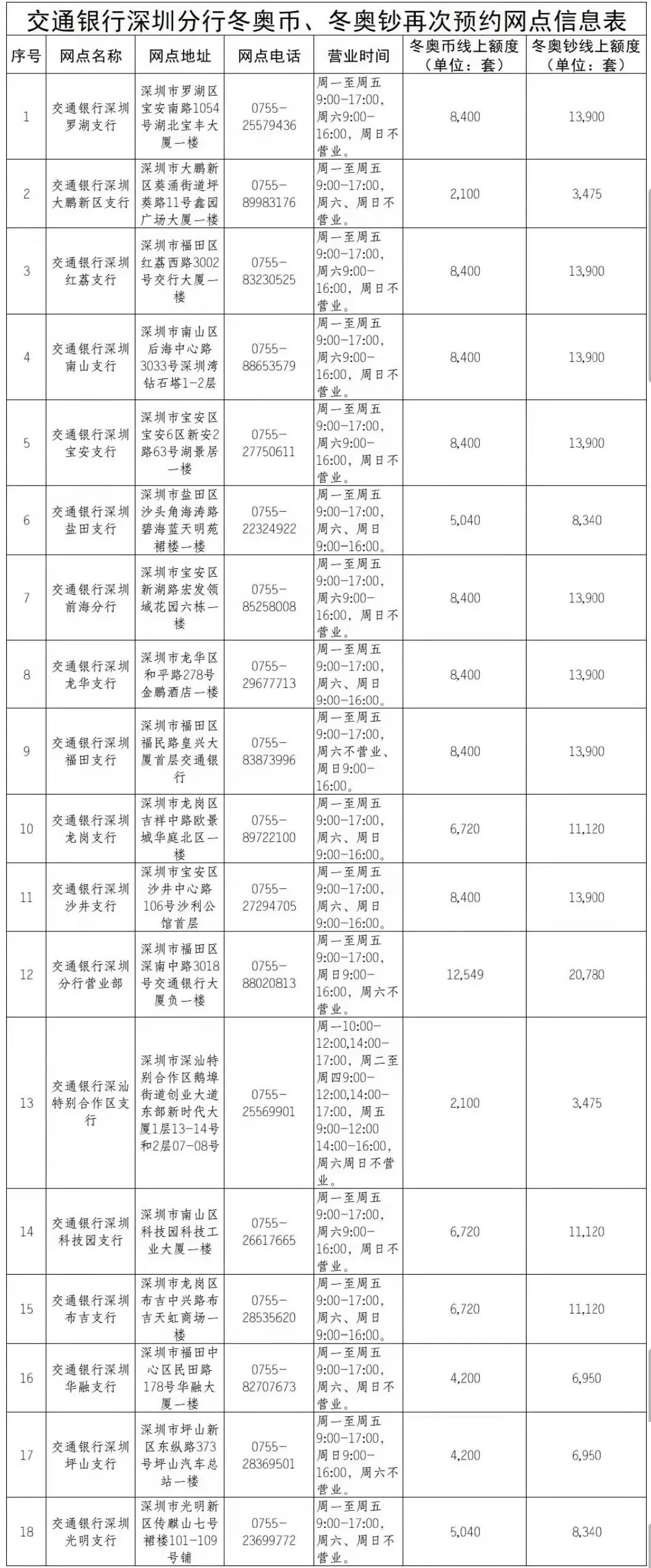 深圳新聞網(wǎng)2022年2月11日訊 (記者 朱琳)根據(jù)中國人民銀行《第24屆冬季奧林匹克運動會普通紀念幣、紀念鈔再次預(yù)約兌換工作安排》規(guī)定,將對第24屆冬季奧林匹克運動會普通紀念幣、紀念鈔(以下分別簡稱冬奧幣、冬奧鈔)發(fā)行剩余部分再次開展預(yù)約兌換。交通銀行深圳分行(以下簡稱“深圳交行”)承擔深圳地區(qū)的部分預(yù)約兌換工作,現(xiàn)將有關(guān)事項通告如下。