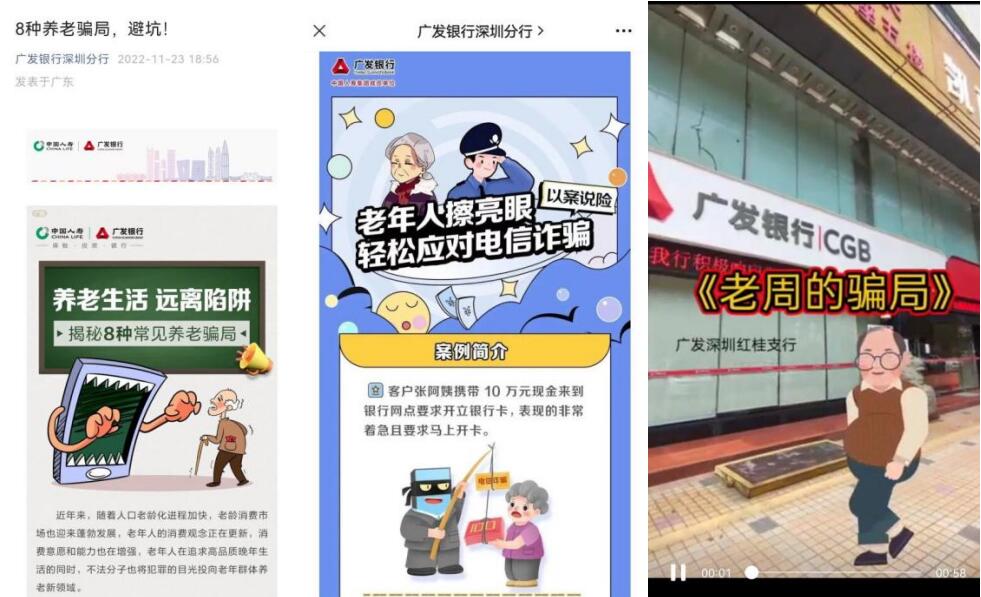 廣發(fā)銀行深圳分行積極運用數(shù)字科技與新媒體宣傳相結合,通過發(fā)動全行開展寓教于樂的短視頻大賽方式來宣傳金融知識,提高老年人防范養(yǎng)老詐騙意識;通過分行微信公眾號發(fā)送防范非法集資、防范養(yǎng)老詐騙等宣傳軟文;加強對打著科技創(chuàng)新、綠色轉型等政策旗號,利用元宇宙、NFT等新概念的新業(yè)態(tài)新形態(tài)等非法集資活動進行風險提示。