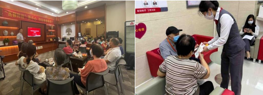 各網(wǎng)點邀請附近的老年客戶到行參與講座,以目前典型的養(yǎng)老騙局作為切入點,通過播放分行自制養(yǎng)老防詐小短片,以生動的語言向老年人揭示一些宣稱以房養(yǎng)老為名,誘騙老年人抵押房產購買“高收益”理財產品等進行非法集資詐騙的陷阱,向老年人普及新型詐騙趨勢,拓寬信息交流渠道,充分發(fā)揮銀行金融知識宣傳的網(wǎng)點效應。