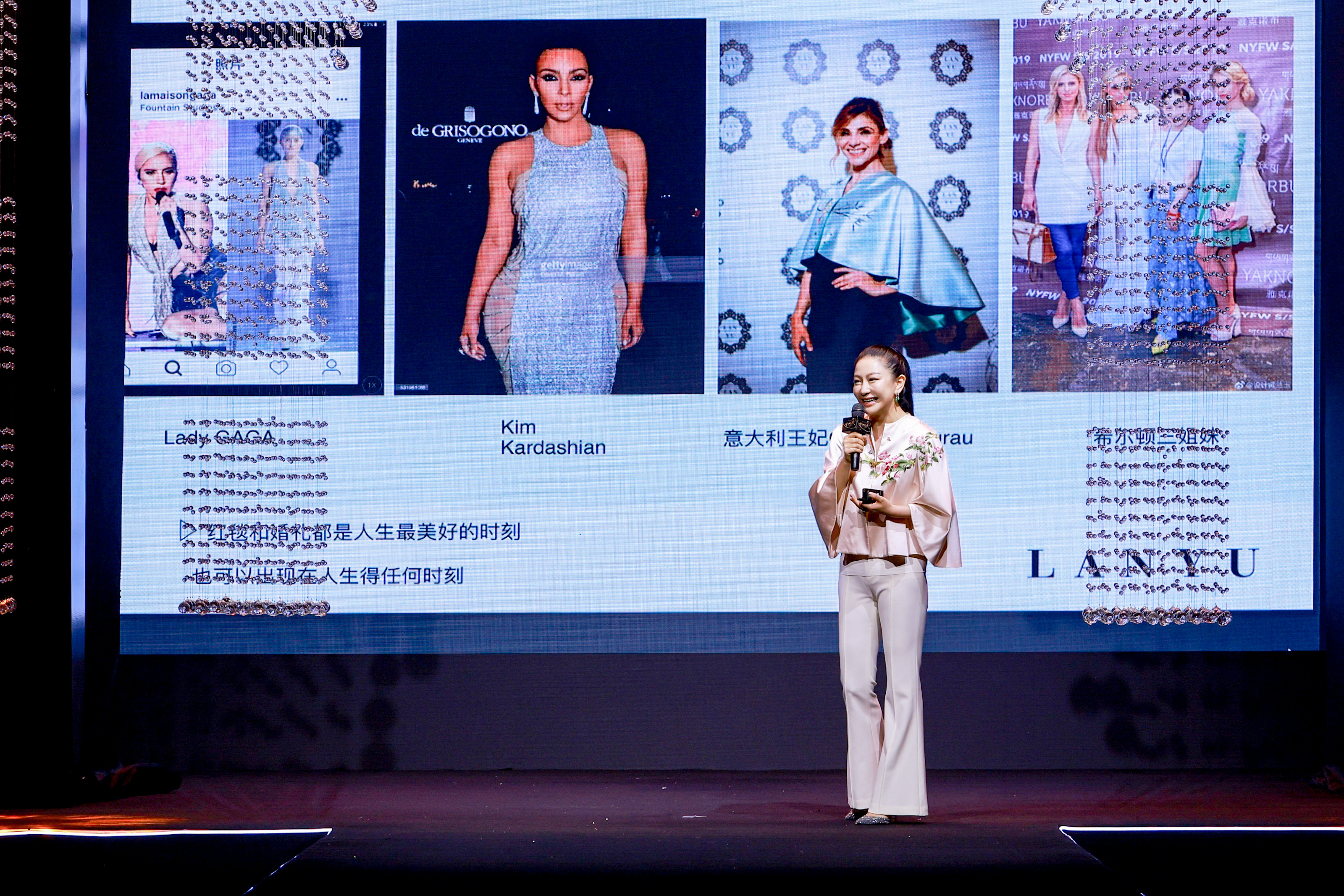 現(xiàn)場更有LANYU高定禮服展示,將中式美學意境與西式時尚剪裁完美融合,同時加重了蘇繡非遺元素的應用比例,將更多的非遺技藝融入服飾創(chuàng)作中,呈現(xiàn)出超高藝術(shù)水準。