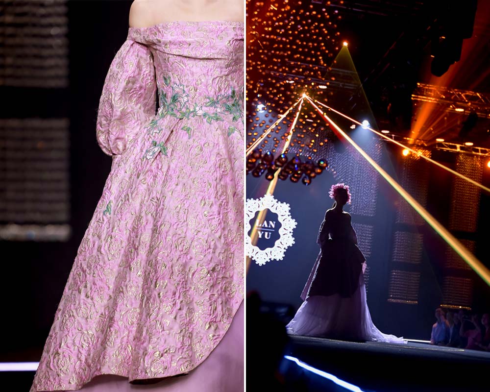 值得一提的是,LANYU品牌帶來了歷屆發(fā)布經(jīng)典系列中的代表作品,展出設計融合了蘇繡藝術(shù)的經(jīng)典手工技藝特色及現(xiàn)代時裝設計的新鮮潮流之美,綻放出了美輪美奐的視覺藝術(shù)效果,國風文化與國際時尚撞了個滿懷,讓現(xiàn)場觀眾贊嘆不已。