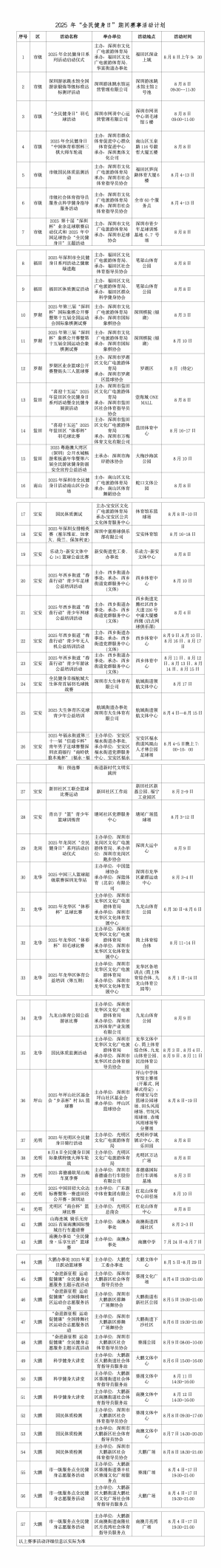2025年8月8日是我國第17個“全民健身日”。今年,深圳迎來了第十五屆全國運動會和殘?zhí)貖W會,為積極響應“全民全運,全運惠民”的理念,深圳在“全民健身日”期間精心組織了57項群眾喜聞樂見的賽事活動,涵蓋球類、徒步、騎行、水上等多個項目,139家體育場館面向市民免費或優(yōu)惠開放,降低運動門檻,惠及更多市民。