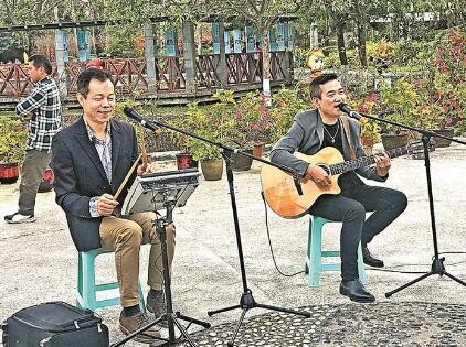 街景是一個城市最直觀的景象。富有個性的建筑,形式多樣的綠化設計,蘊含城市文化符號的公共設施,都可以成為城市街景的有效點綴。去年以來,寶安多了一道“動起來”的城市街景——街頭藝人表演。昨日,區(qū)公共文化服務中心文化專干朱韶軍和潘衛(wèi)東、鄭璇、楊鈺哲和李希文利用周末時間分別在寶安公園、海濱廣場、西灣紅樹林公園,為市民獻上吉他與架子鼓經典曲目演唱、二胡演奏、手風琴演奏與經典歌曲聯(lián)唱,讓在這些地方休閑、娛樂的市民感受到街頭藝術表演的魅力。