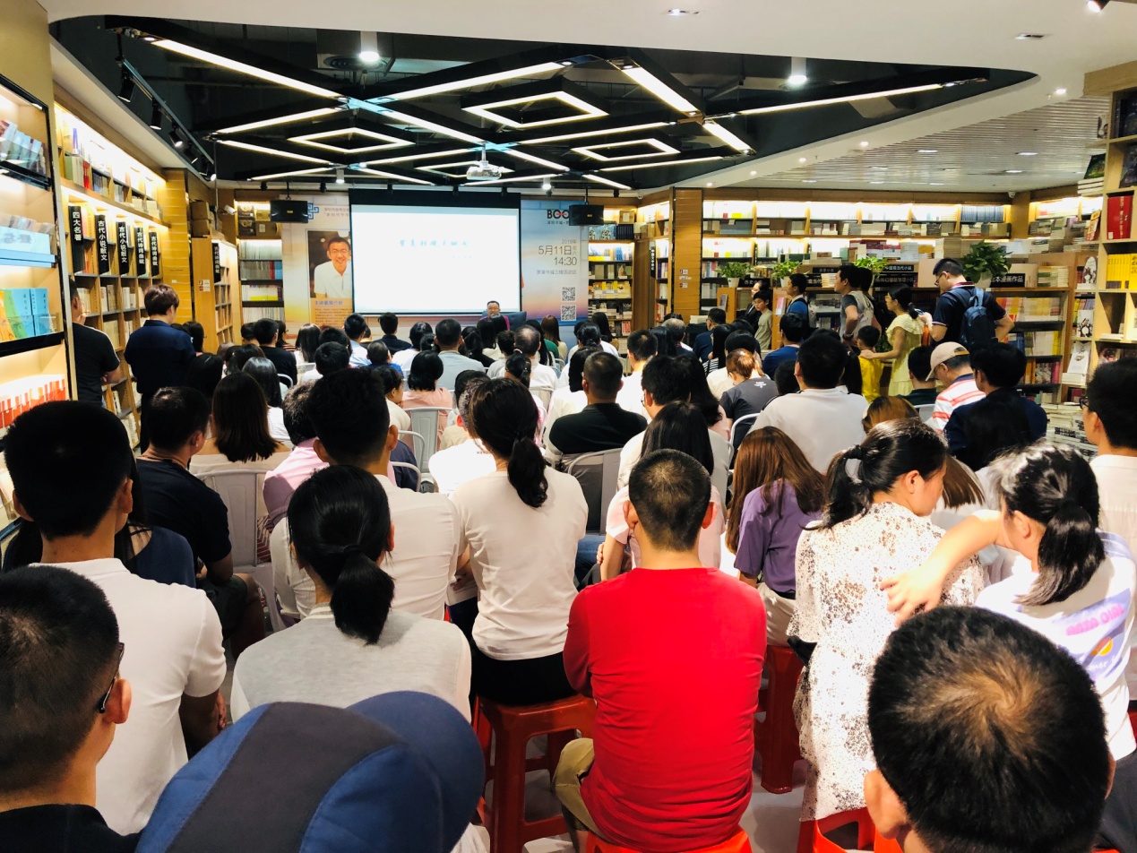 5月11日下午,“新時(shí)代中華優(yōu)秀傳統(tǒng)文化進(jìn)社區(qū)”項(xiàng)目首場(chǎng)講座之“登高壯觀天地間——為李白畫像”在羅湖書城三樓開展。本次活動(dòng)由深圳市壹書文化傳播有限責(zé)任公司、深圳書城羅湖城主辦,特邀深圳出版發(fā)行集團(tuán)黨委書記、總經(jīng)理尹昌龍博士擔(dān)任主講嘉賓,解讀多面詩仙李白,為聽眾奉上一場(chǎng)難得的文學(xué)盛宴。講座還未開始,現(xiàn)場(chǎng)已座無虛席,過道上站滿了李白迷,聽眾們?cè)缭缇蛠盱o候著了。