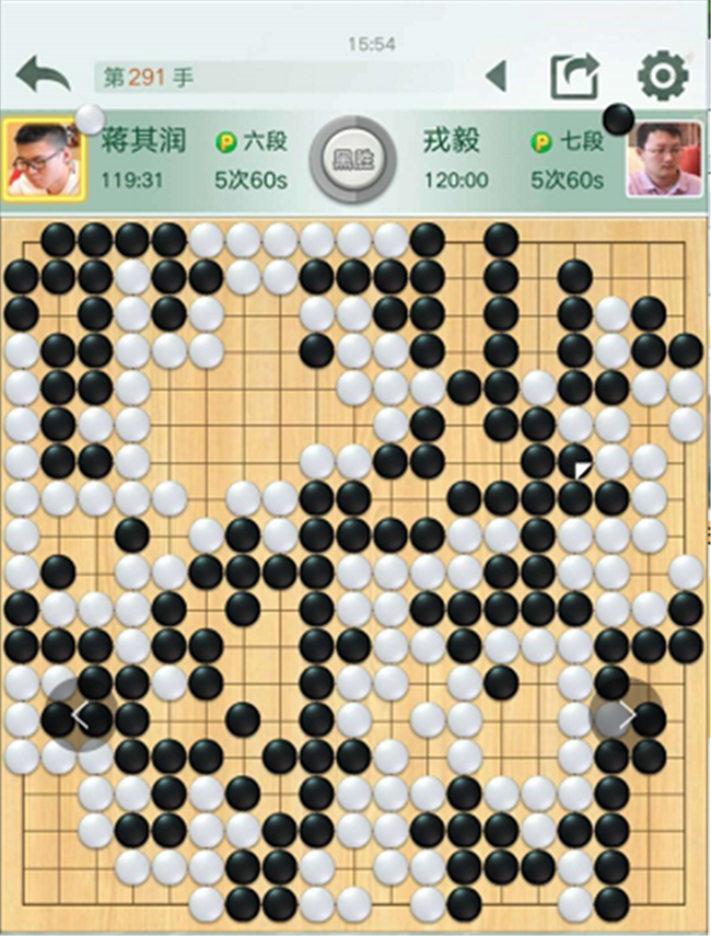 【賽場(chǎng)花絮】本輪比賽中,下出了“四劫循環(huán)”無勝負(fù)的棋局。此局出現(xiàn)在上海建橋?qū)W院隊(duì)對(duì)陣日照山海大象隊(duì)的主將之戰(zhàn)中,上海主將李維清與日照主將江維杰下出“四劫循環(huán)”,按規(guī)定,本局判為無勝負(fù)。對(duì)局停止時(shí),雙方都各剩最后一次讀秒。兩人立即進(jìn)行加賽。中國圍棋隊(duì)領(lǐng)隊(duì)華學(xué)明發(fā)朋友圈稱贊棋手具有職業(yè)風(fēng)范。