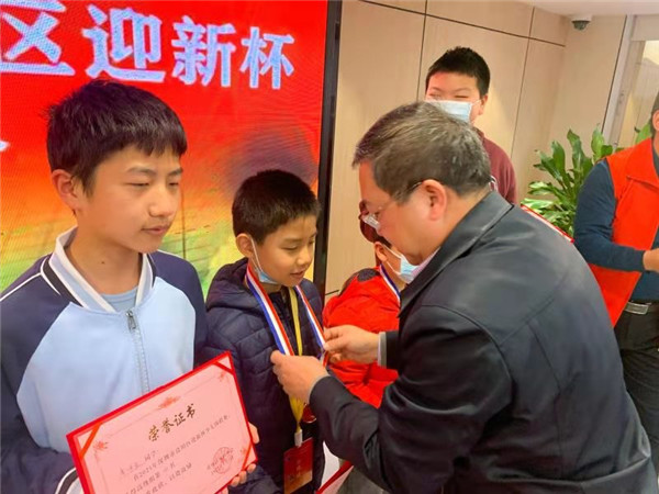 迎新杯初級(jí)組獲獎(jiǎng)選手與頒獎(jiǎng)嘉賓合影。