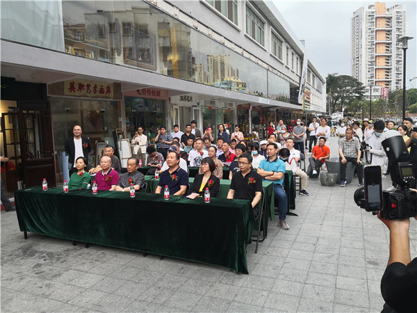 開幕儀式上,珍風(fēng)閣藝術(shù)館總經(jīng)理夏雨致辭,感謝一從嘉賓和書畫愛好者們的捧場(chǎng)。隨后,深圳市美術(shù)家協(xié)會(huì)名譽(yù)主席、深圳美術(shù)館原館長(zhǎng)宋玉明先生致辭。他說(shuō),他來(lái)大芬村多次,一直關(guān)注大芬油畫村的發(fā)展和壯大,認(rèn)為大芬村為全國(guó)書畫走向市場(chǎng)開了先例。個(gè)人在此舉辦畫展是首次,感覺(jué)很有意義,是一次走向市場(chǎng)的實(shí)踐機(jī)會(huì),值得珍惜和學(xué)習(xí),也歡迎大家批評(píng)指正。在現(xiàn)場(chǎng),宋玉明老師還回答了主持人的提問(wèn)。他謙虛地說(shuō),這次和陳湘波主席的聯(lián)展,有陳主席的花鳥和自己的城市山水,可以雅俗共賞。陳湘波老師因參加“兩會(huì)”未能出席開幕儀式,但在會(huì)后及時(shí)趕到現(xiàn)場(chǎng),表達(dá)自己對(duì)來(lái)賓的感謝和自己對(duì)本次畫展組織的重視和支持。