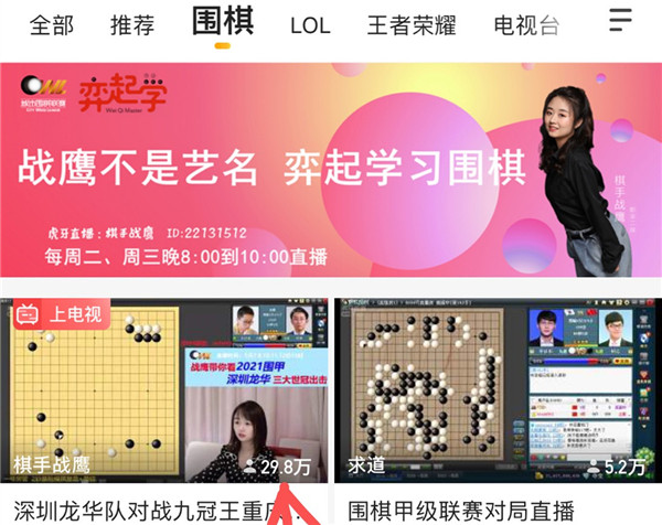 今日虎牙直播,職業(yè)女棋手戰(zhàn)鷹繼續(xù)現(xiàn)場(chǎng)講解點(diǎn)評(píng)深圳龍華隊(duì)對(duì)局情況,觀看人數(shù)又創(chuàng)新高,直沖30萬(wàn)大關(guān)。賽后,“龍哥”時(shí)越來(lái)到直播室,與迷們一起分享了對(duì)局過(guò)程中的心路歷程。戰(zhàn)鷹作為圍棋知名主播,是深圳龍華隊(duì)網(wǎng)上直播合作人,為龍華隊(duì)帶來(lái)了一波接一波的人氣,直播室十分熱鬧!喜歡的朋友接著看吧!不過(guò),大家要記得:明天圍甲休息一天,接著三天會(huì)連播。