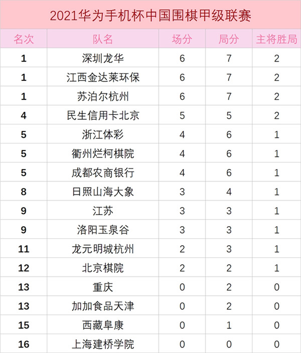 見(jiàn)圳客戶端?深圳新聞網(wǎng)2021年5月8日訊(記者周錦春)2021華為手機(jī)杯中國(guó)圍甲聯(lián)賽第二輪繼續(xù)在浙江省湖州市長(zhǎng)興縣激戰(zhàn)。深圳龍華隊(duì)此輪迎戰(zhàn)圍甲“九冠王”重慶隊(duì),快棋戎毅率先報(bào)捷,時(shí)越隨后鎖定勝局,關(guān)鍵局主將申旻埈贏定半目,最終以3:1的戰(zhàn)勝重慶隊(duì)。目前,江西、蘇泊爾杭州、深圳龍華三隊(duì)同積6分列榜單第一名。