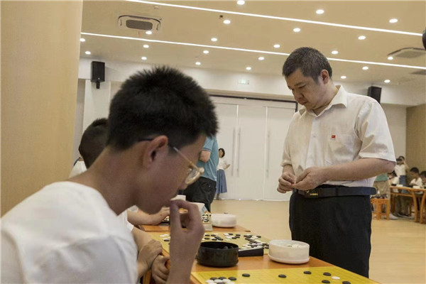 昨天是比賽休息日,深圳龍華隊教練羅洗河九段指導當?shù)貝酆谜摺?/span>