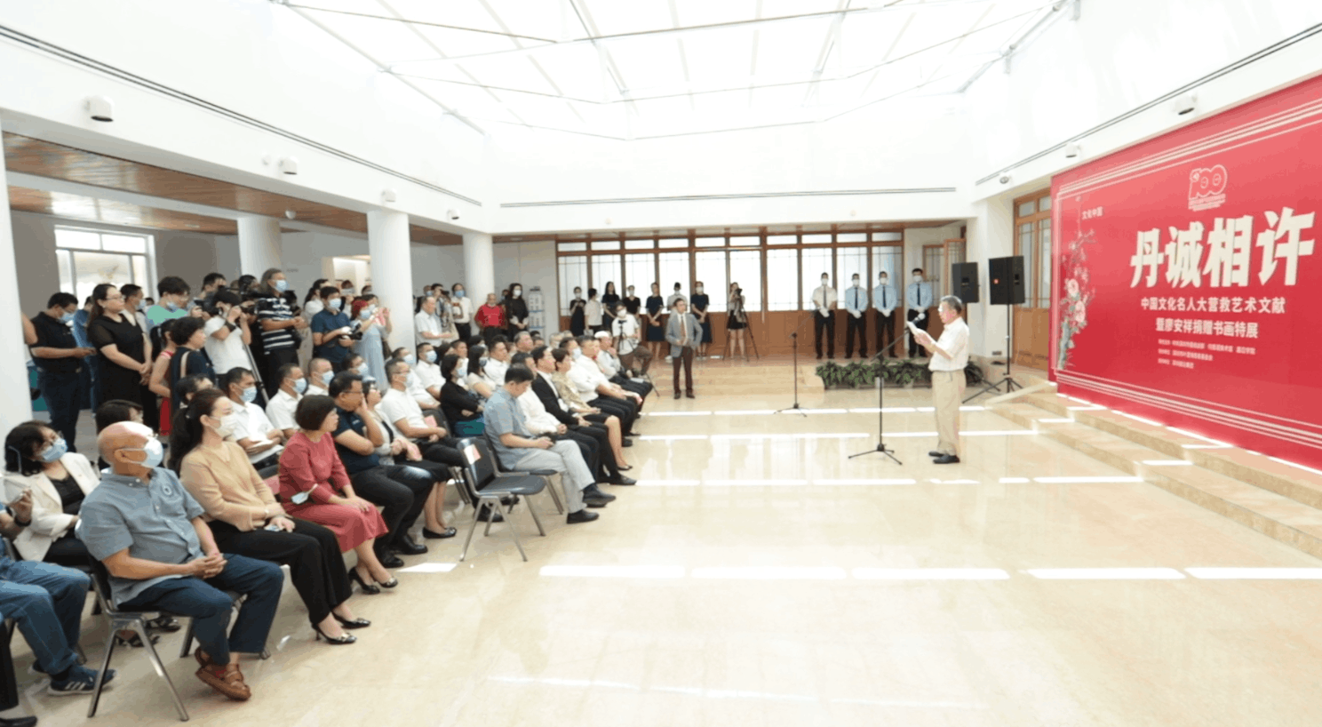 蔡顯良館長向出席開幕活動的嘉賓表示感謝,他介紹,粵港“秘密大營救”被譽(yù)為“抗戰(zhàn)以來最偉大的搶救工作”,它延續(xù)了中國文化的血脈,更彰顯了黨的力量、突顯了黨對文化事業(yè)的重視以及對文化人士的愛護(hù),對推動全民族抗戰(zhàn)以及新中國的文化建設(shè)起到了重要作用。在中國共產(chǎn)黨百年華誕之際,為緬懷先輩的光輝事跡,傳承和弘揚(yáng)統(tǒng)戰(zhàn)精神,美術(shù)館與深圳市委統(tǒng)戰(zhàn)部、嘉應(yīng)學(xué)院聯(lián)合推出此次展覽,為觀眾帶來一場愛國、愛黨的文化之旅。