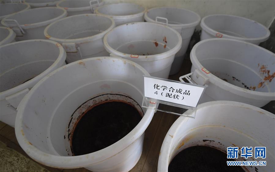 近日,湖北公安機關成功搗毀了一個在黃岡市蘄春縣非法制毒窩點,繳獲俗稱“喪尸藥”的新型毒品甲卡西酮9.1噸,各類制毒原料49噸以及大量制毒工具,抓獲犯罪嫌疑人15人。? 新華社記者程敏攝