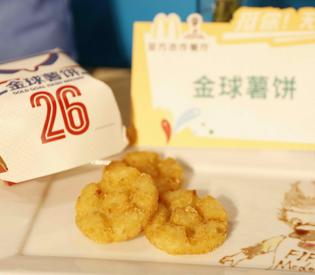 契合足球主題、寓意弧線球的香蕉派和擁有足球外形的金球薯餅