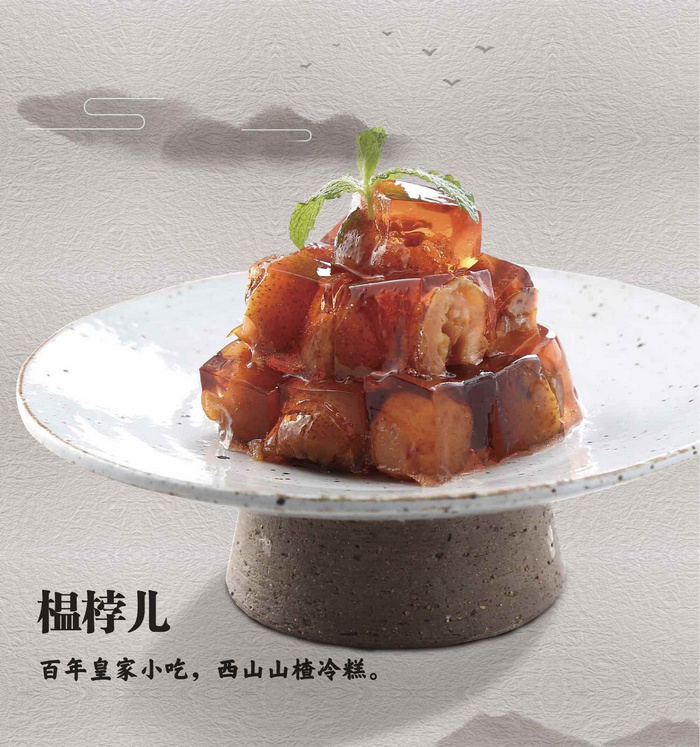 此名相傳為慈禧太后所賜,是她十分喜愛的小零嘴兒。榅桲與山楂外形相似,實則不同。它是山楂的一種,外體為紅色,更為小巧。梧桐餐廳在制作時也保證了北京傳統(tǒng)。選好果子后,先要焯水,并將水拋掉,否則有苦澀味,焯完的果實要扒皮,扒下來的皮和果肉可以一起先炒后煮。煮好的榅桲再經(jīng)發(fā)酵、冷卻,成品榅桲湯晶瑩剔透,果實軟爛甜糯,吃后不倒牙,且能長期保存,不會腐敗。