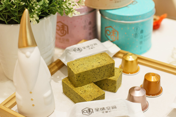 除了這款奶黃流心酥,徐福記實(shí)體品牌體驗店——呈味空間主打的現(xiàn)烤手工鳳梨酥還有多種口味,有經(jīng)典原味/蔓越莓/馥香烏龍茶/相思抹茶/玫瑰口味供君任選。每款鳳梨酥的誕生都來之不易,從材料制作、烘焙、出爐都要經(jīng)過糕點(diǎn)師傅的精心手工打磨。花費(fèi)15種原料,經(jīng)過11道工序,連各種用料配比都要精確到克才實(shí)現(xiàn)一塊鳳梨酥的誕生,看得出這塊不普通的鳳梨酥“出生“有多矜貴。而且原材料都是精心挑選的清甜細(xì)膩陽光土鳳梨,通常10個才有一個符合要求,制作一盒就至少需要整整20個。反復(fù)打磨鳳梨的果肉,再熬制成細(xì)膩的、富有纖維感的果餡,絲絲纖維口感,一口下去,滿滿鳳梨果肉,瞬間得到視覺與味蕾的雙重滿足。特別一提的還有制作鳳梨酥的糖,不是普通的白砂糖,而是健康而且低熱量的 “海藻糖”,簡直是為擔(dān)心發(fā)胖問題的吃貨們帶來的福音。只有10天保質(zhì)期的美味,吃貨們不用半個鐘就能解決了哈哈。