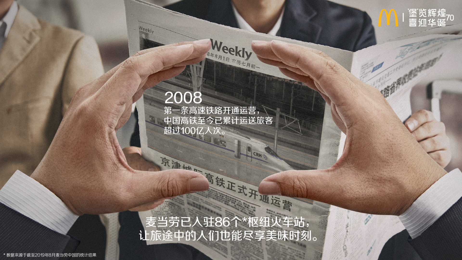 便捷出行,美味隨心:2008年,中國第一條高速鐵路——京津城際鐵路正式開通。高鐵不僅改變了人們的出行方式,更推動了區(qū)域經(jīng)濟(jì)發(fā)展。麥當(dāng)勞已入駐86個樞紐火車站,為旅客提供便捷美味。