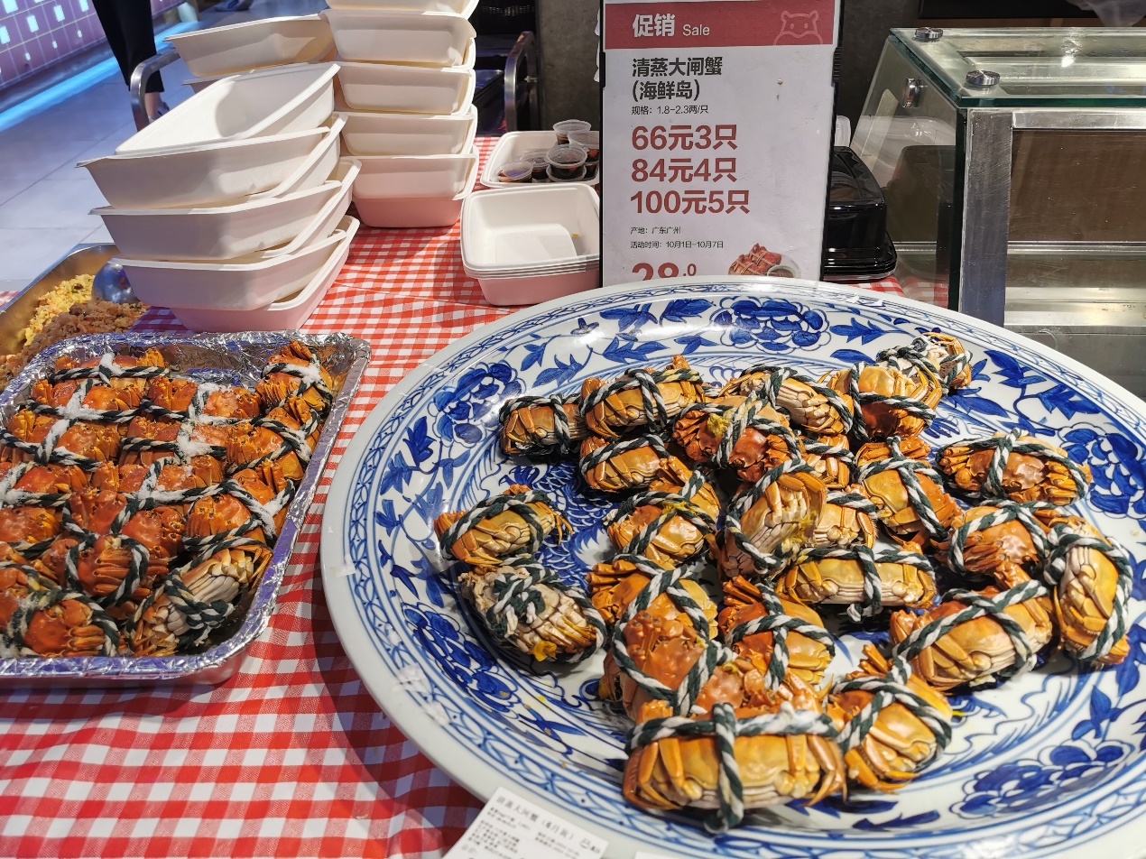 其中爆款非大閘蟹莫屬。民間有個(gè)講究:“九雌十雄”,農(nóng)歷九月吃母的大閘蟹,農(nóng)歷十月吃公的,因?yàn)槟菚r(shí)候大閘蟹的蟹黃和蟹膏是最好的。黃金周期間,盒馬深圳大閘蟹銷量與9月相比增長六倍。其中最受歡迎的是2兩重的母蟹,盒馬皇庭廣場店假期里試過一天賣出近兩千只大閘蟹。