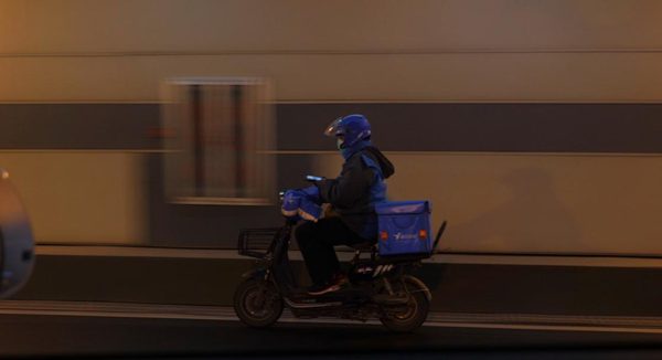 疫情期間,餓了么外賣騎手在武漢地區(qū)送餐
