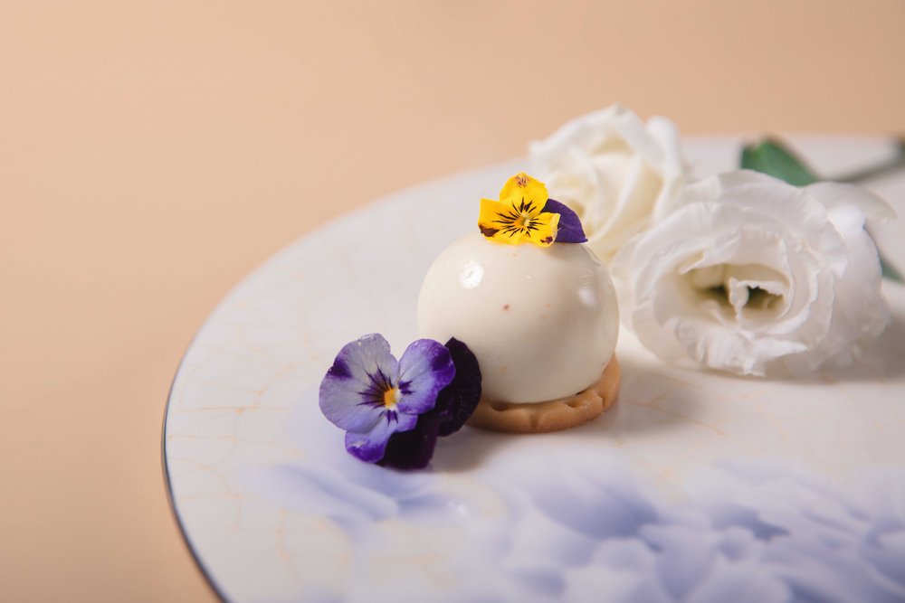 酒店餅房廚師長趙偉融匯創(chuàng)新,選用當(dāng)季新鮮花材與鮮爽水果,打造了數(shù)款意趣多彩的甜品佳作:茉莉百香果椰子蛋糕,茉莉花的清新邂逅酸甜的百香果與香濃的椰子,細(xì)品層疊交融的奇妙滋味;洛神花玫瑰蛋糕,玫瑰的馥郁悠長糅合洛神花的明快艷麗,一口便是春天;青檸春茶蛋糕,別具創(chuàng)意地將青檸和碧螺春茶融合,酸爽口感里裹挾著若隱若無的茶香;桂花米酒蛋糕,當(dāng)桂花飄進(jìn)米酒,花香伴著微醺,細(xì)膩綿柔,在唇齒間琢磨品味;水果“炸彈”,輕輕一敲,冰爽可口的水果傾瀉而出,果香四溢,是視覺和味覺的盛宴。咸點也是不可錯過的味蕾禮賞:肉質(zhì)鮮嫩的蟹肉和清新爽口的牛油果巧妙融合,呈現(xiàn)海陸鮮甜交匯的美妙體驗;細(xì)膩鮮美的三文魚,配上絲滑濃郁的奶油芝士和誘人的魚子醬,是一場舌尖的奢享。隨下午茶搭配的新鮮烘焙司康餅,花香果香四溢的花茶,更增添午后的曼妙意趣。