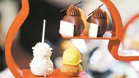 薩赫蛋糕是巧克力下午茶套餐中的一員,此外還有水果提拉米蘇、撒西米漢堡、三文魚三文治、水果撻、泡芙等。